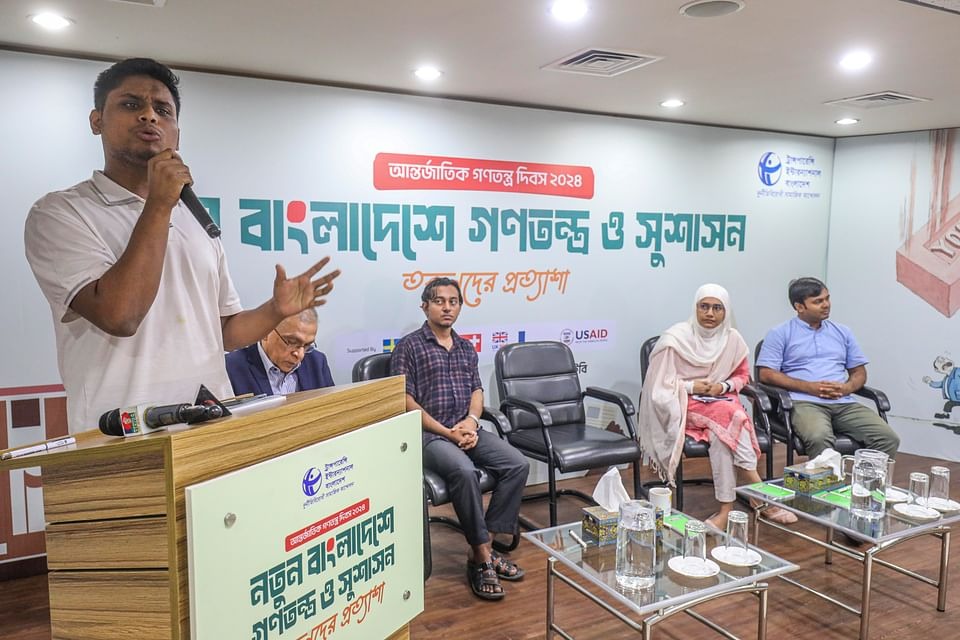 ‘নতুন বাংলাদেশে গণতন্ত্র ও সুশাসন: তরুণদের প্রত্যাশা’ শীর্ষক এক আলোচনা সভায় বক্তারা এসব কথা বলেন। আজ রোববার দুপুরে রাজধানীর ধানমন্ডির মাইডাস সেন্টারে আন্তর্জাতিক গণতন্ত্র দিবস উপলক্ষে এ সভার আয়োজন করে ট্রান্সপারেন্সি ইন্টারন্যাশনাল বাংলাদেশ (টিআইবি)।