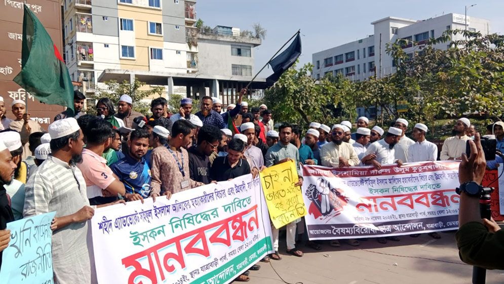 ইসকন নিষিদ্ধের দাবিতে বৃহস্পতিবার সারা দেশে বিক্ষোভ মিছিল ও সমাবেশ হয়েছে। এতে ছাত্রদল, শিবির, হেফাজত ও ছাত্রদের সর্বস্তরের জনতা অংশ নেন। বিক্ষোভ সমাবেশে তরুণ আইনজীবী সাইফুল ইসলাম আলিফের খুনিদের দ্রুত গ্রেফতার ও ফাঁসির দাবি জানানো হয়।